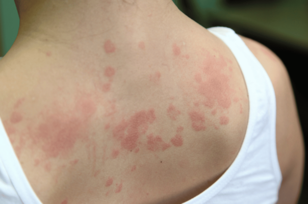 Eins vessar úr útbrotunum þegar verst lætur. Í sumum tilvikum byrja útbrotin sem skyndileg uppþot sem nefnd eru þinur (urticaria). Þegar exemið hefur verið lengi til staðar verður húðin þykk, leðurkennd og dálítið hreistruð.